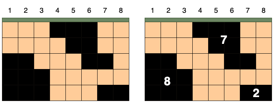 세로길이가 n, 가로길이가 m인 격자 모양의 땅 속에서 석유가 발견되었습니다. 석유는 여러 덩어리로 나누어 묻혀있습니다. 당신이 시추관을 수직으로 단 하나만 뚫을 수 있을 때, 가장 많은 석유를 뽑을 수 있는 시추관의 위치를 찾으려고 합니다. 시추관은 열 하나를 관통하는 형태여야 하며, 열과 열 사이에 시추관을 뚫을 수 없습니다.