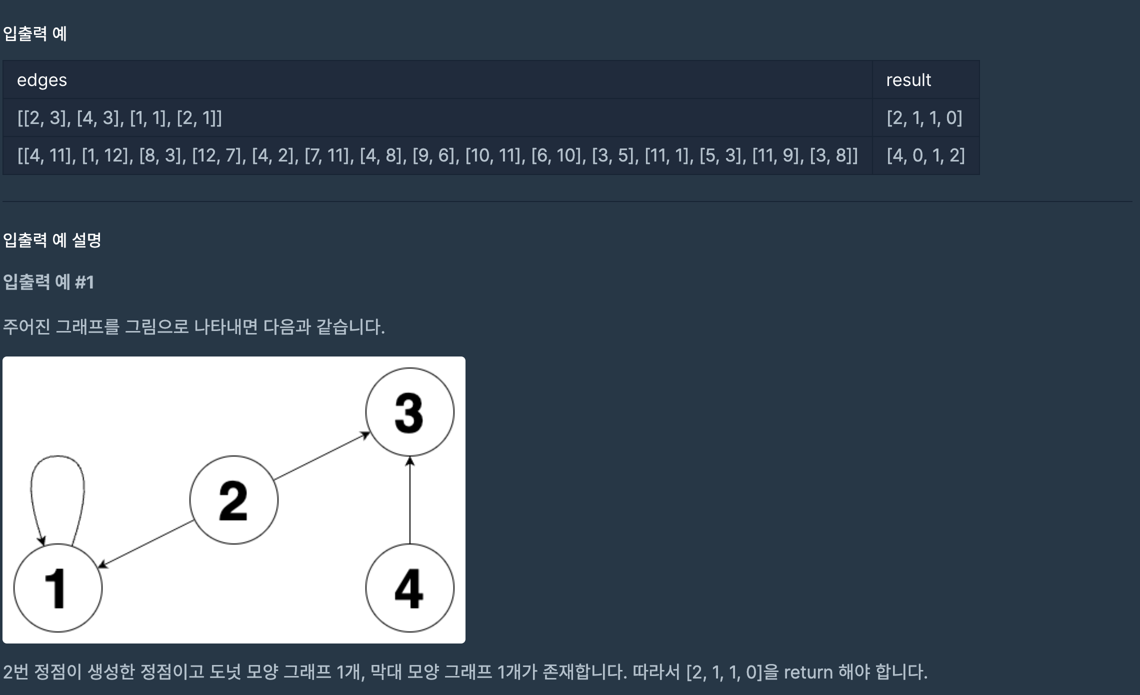 사실 사이클 구하기가 너무 싫었다 ㅋㅋ.. 입출력 예시를 보면 ? --> 루트 정점으로 부터 그래프가 뻗어 나온다